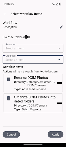 Permita que o aplicativo trabalhe por você. Classifique seus arquivos em pastas automaticamente, usando critérios como data, localização ou metadados. Crie automações poderosas para monitorar pastas específicas: assim que um novo arquivo for salvo, ele será automaticamente renomeado ou movido conforme suas regras predefinidas.